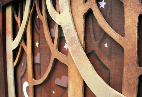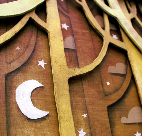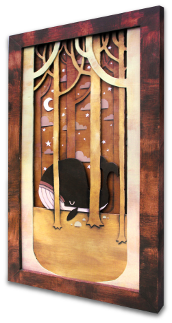 "The Elusive Forest Whale" 2009 24x40, Mixed media on wood The first true 3d piece in my collection. Was created for "Post No Bills", an illustration artwork show in Toronto in 2009.