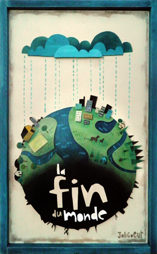 "La Fin Du Monde" 2010 13x25, Latex on wood This piece was created for the Sept 2010 "Post no Bills" illustration show. The theme was movie posters. Detail:
