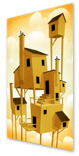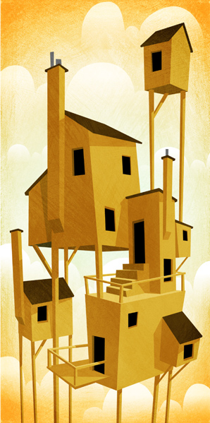 "High Homes" 2011 Digital collage There are tons of benefits to living in homes in the sky. I can't remember any of them right now, but trust me there's lots.