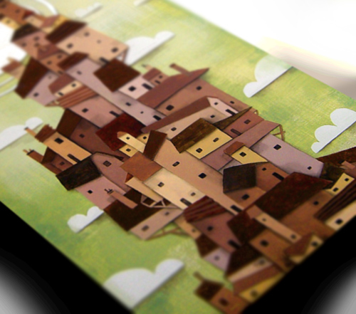 "Strucutred Living" 2009 13x25, Mixed media on wood Note the rocking chair at the top. That's my seat. That's where I watch the toils of the world below, rocking the days away. Detail: